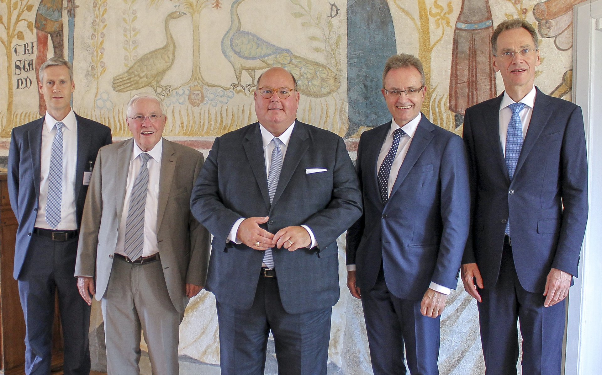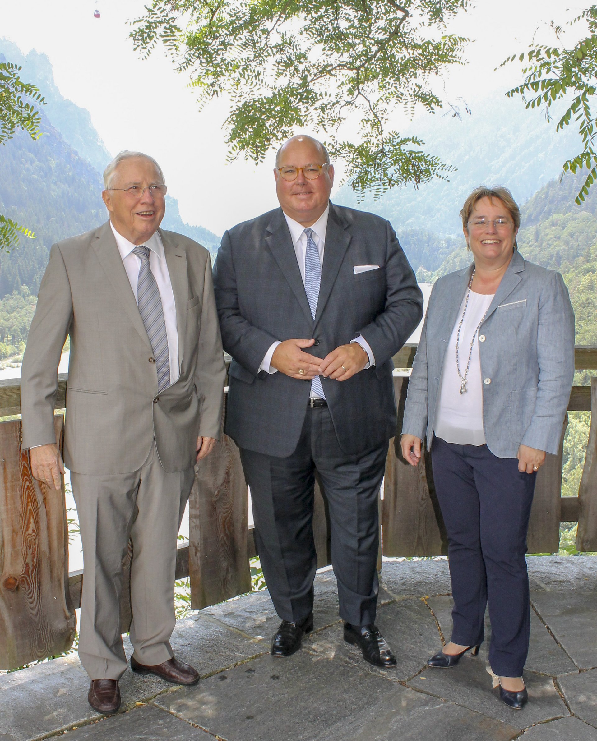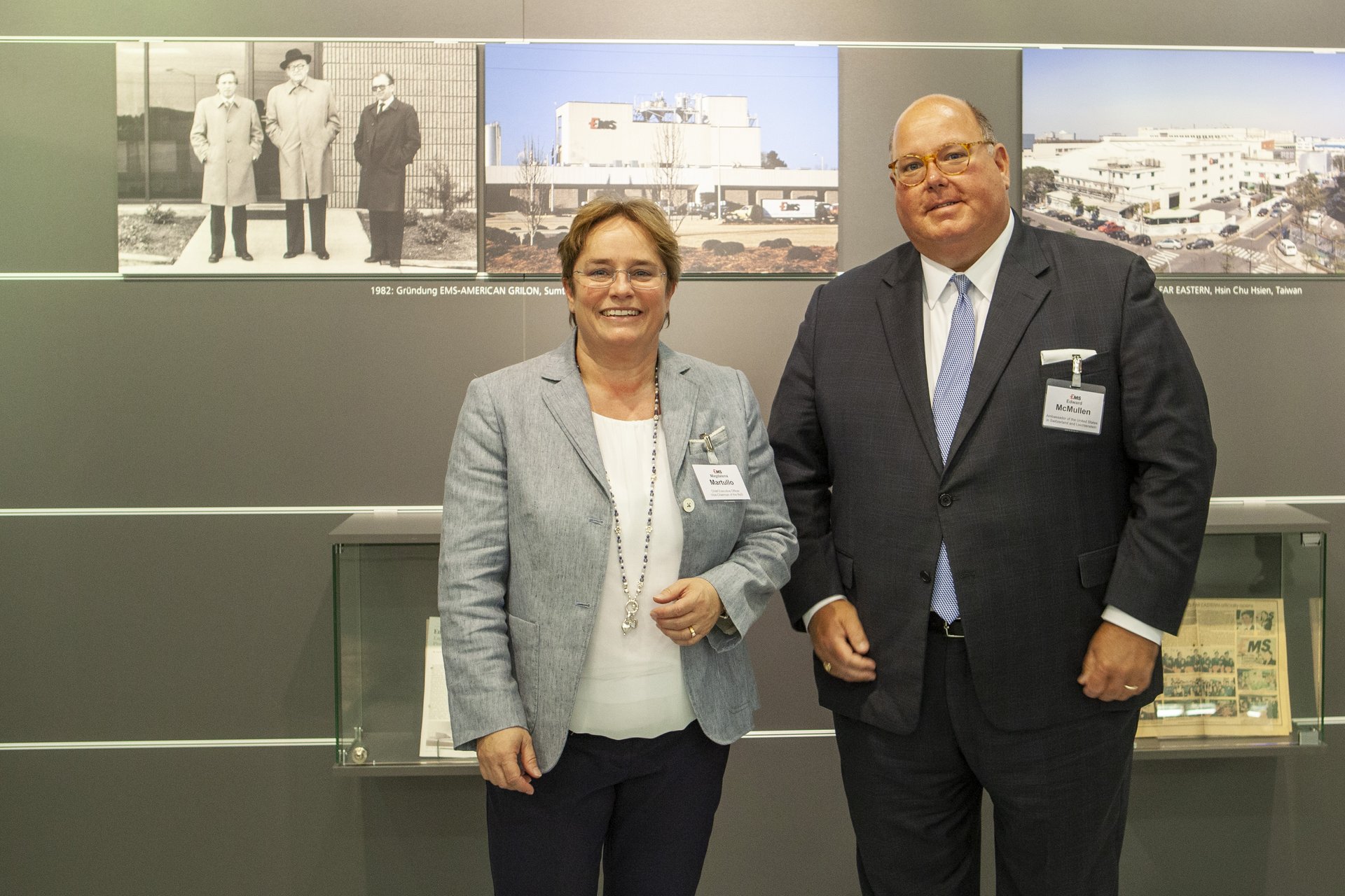 Edward McMullen, der Botschafter der USA in der Schweiz, besuchte am Dienstag, 9. Juli 2019 die EMS-CHEMIE in Domat/Ems. Nach einem Rundgang mit EMSChefin und Bündner Nationalrätin Magdalena Martullo-Blocher durch das Werk und die Ausstellung über die fast unglaubliche, 83-jährige Geschichte von EMS ging es weiter zum Mittagessen und einer Besichtigung auf Schloss Rhäzüns, wo auch Altbundesrat und Ehrenpatron Christoph Blocher dazustiess.