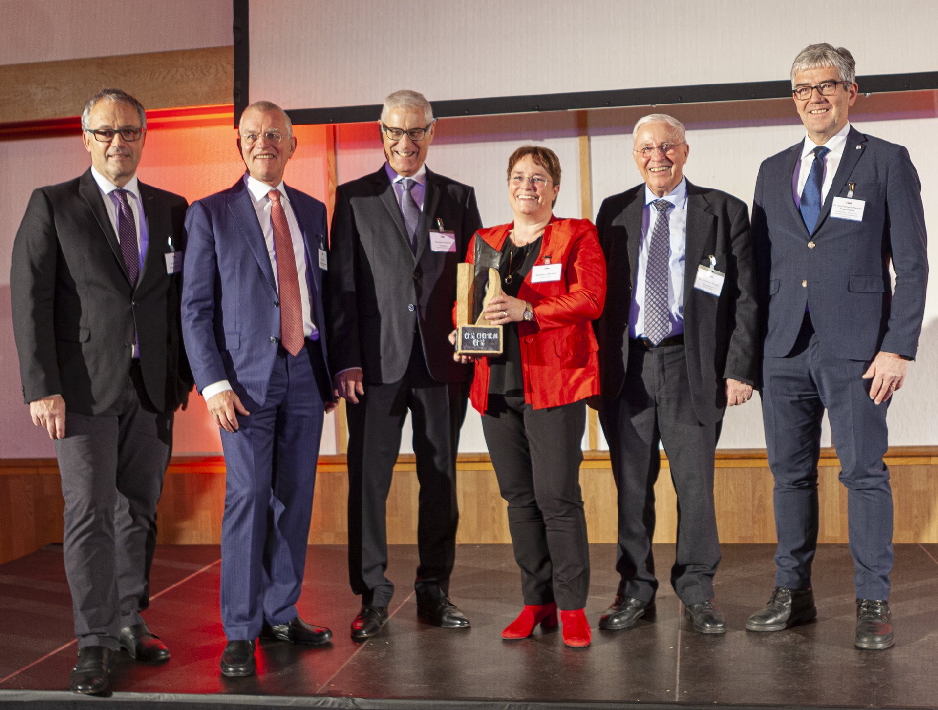 Stolz konnte die EMS-CHEMIE am vergangenen Mittwoch den "Nationalen Bildungspreis" entgegen nehmen. Christian Fiechter, Präsident der Hans Huber Stiftung, überreichte der EMS-Chefin Magdalena Martullo die begehrte Auszeichnung im Rahmen einer grossen Feier bei der EMS-CHEMIE in Domat/Ems. Regierungsrat Jon Domenic Parolini und Gemeindepräsident Erich Kohler sprachen insbesondere den Ausbildnern und den über hundert Lernenden ihren Dank aus.