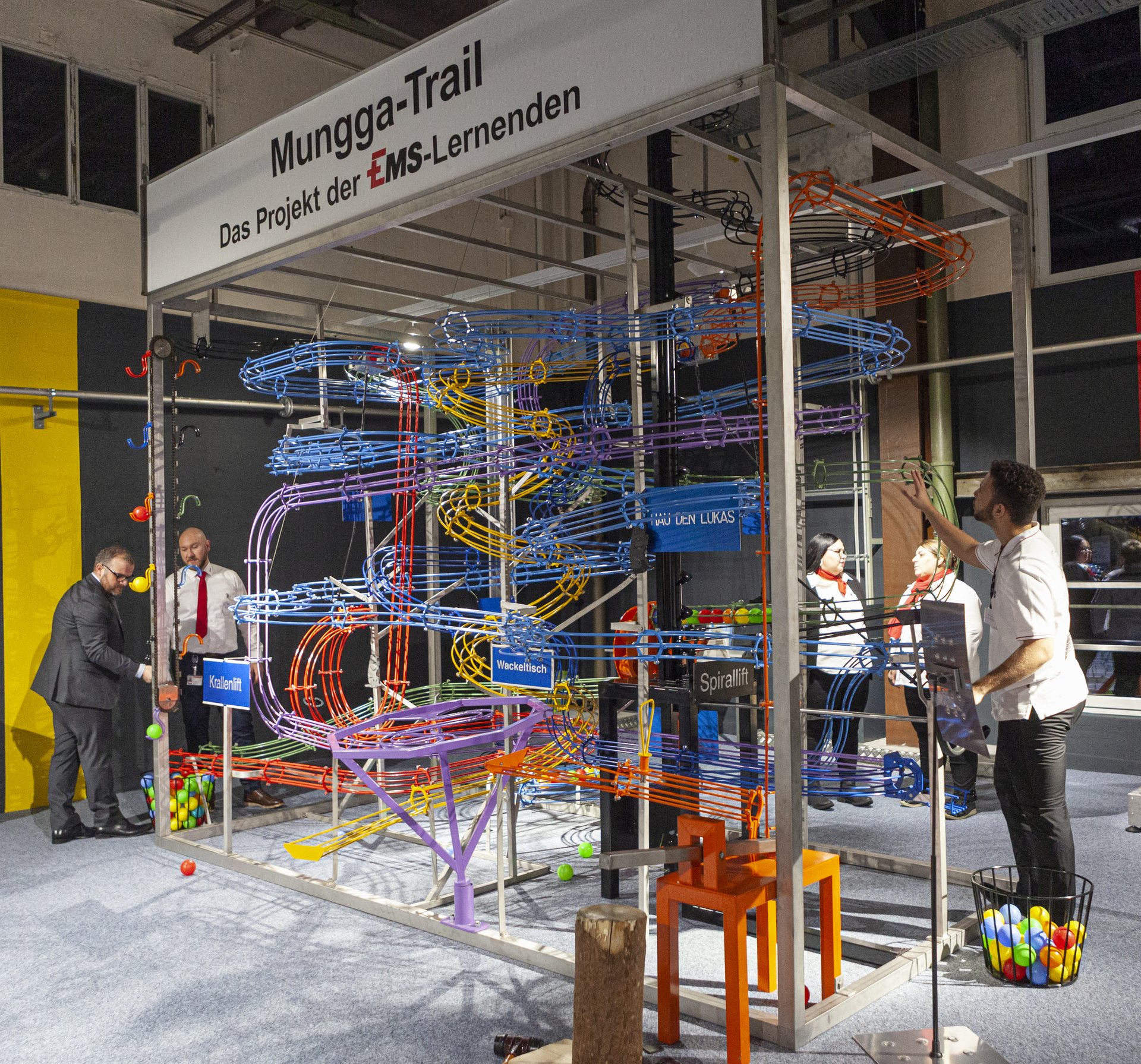 Verpflegt wurden die Gäste gleich von den Lernenden selber, welche aus der EMS-Labor-Bar geheimnisvolle Drinks ausschenkten. Beim nachfolgenden Besuch des EMSORAMA konnten sich die Gäste dann gleich persönlich von Naturwissenschaften und Technik begeistern lassen. So wurde an der neuen Riesenkugelbahn "Mungga-Trail", dem "Torbogen" oder der "Impulsschleuder" fleissig experimentiert, gestaunt, bewundert und gelacht. Irgendwo und irgendwie ist halt jeder auch ein "Lehrling"…